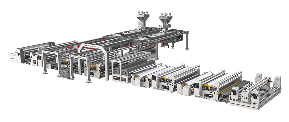 SJ150-FMS4500B 雙面塑料擠出復(fù)膜機(jī)組(寬幅彩色篷布淋膜設(shè)備)